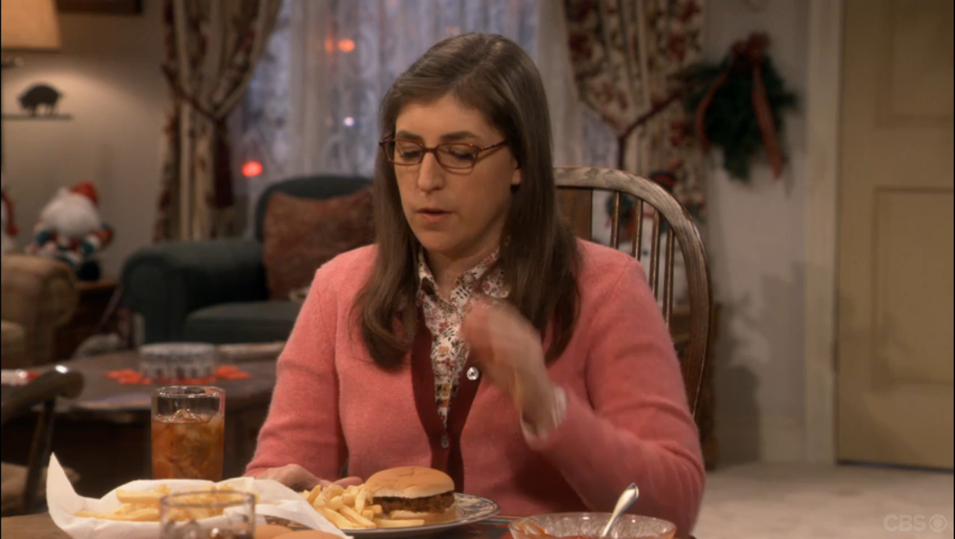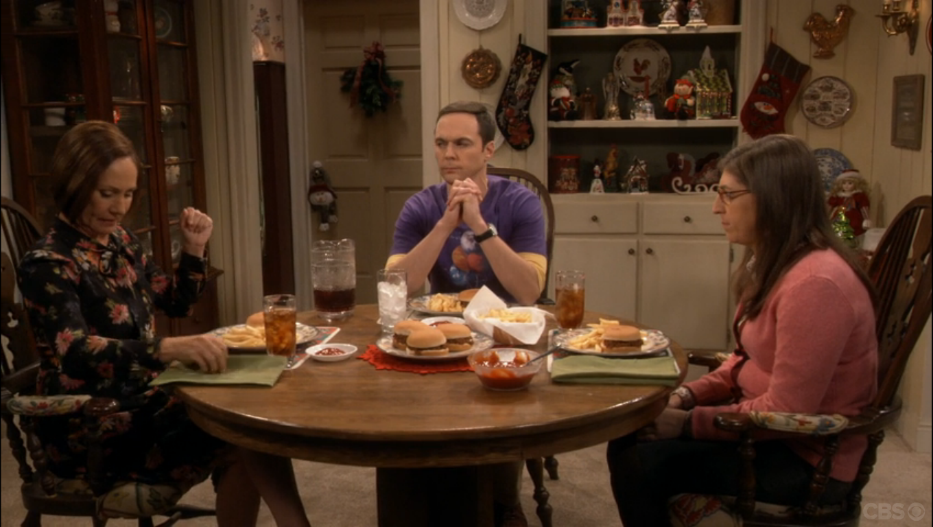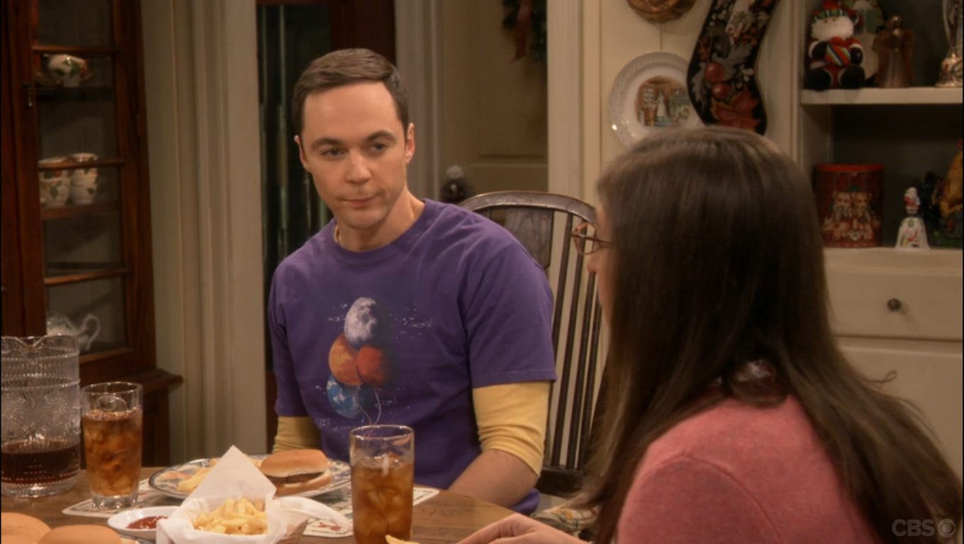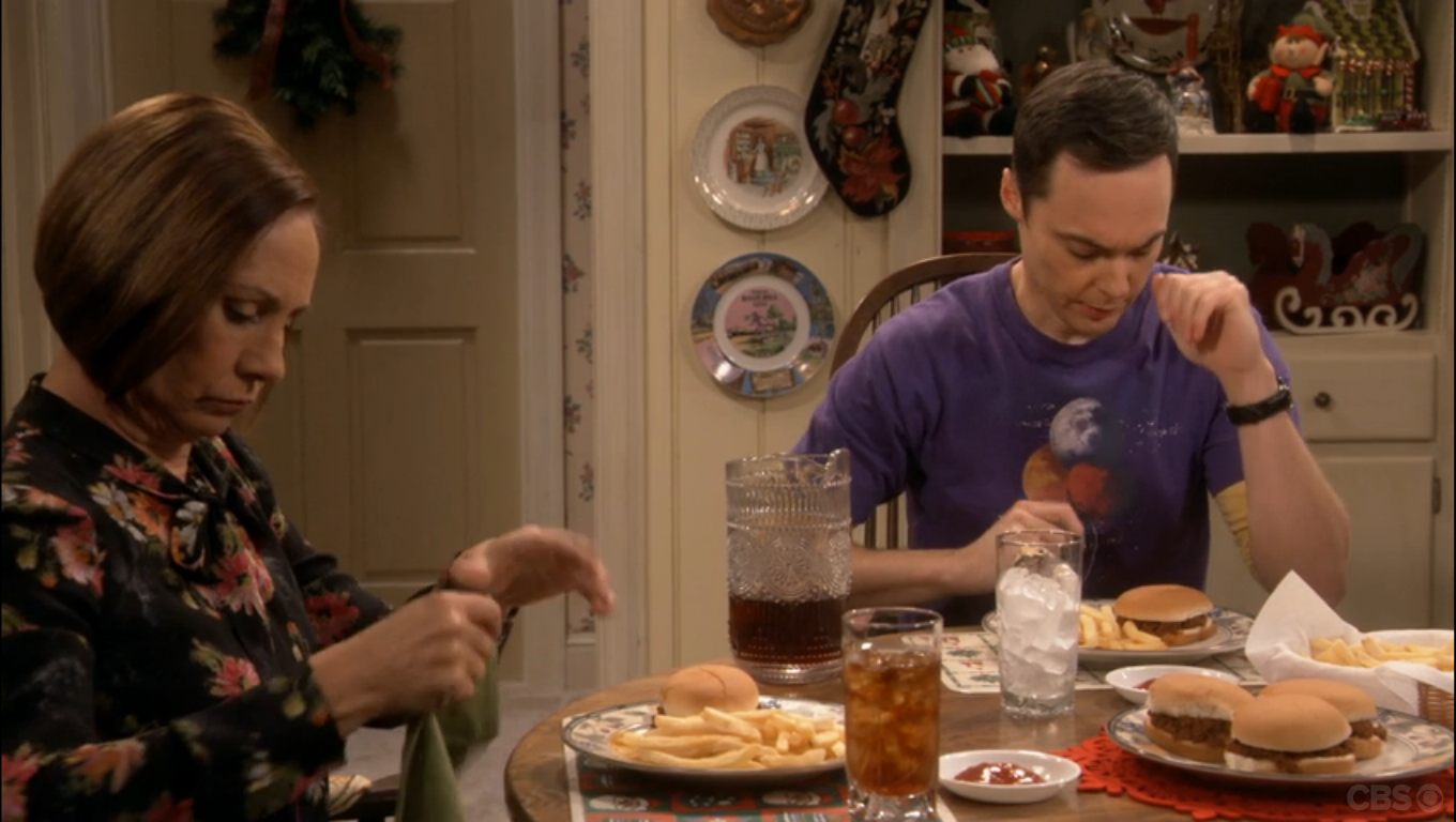 In this episode, the gang is meeting up to share stories about their holidays. Sheldon and Amy have returned from a trip to Texas to visit his mother Mary (played by the brilliant Laurie Metcalf). Though Sheldon loves his mother, his home state is not his favorite place to be – as Sheldon says “The Lone Star State, that should be its Yelp rating”.
