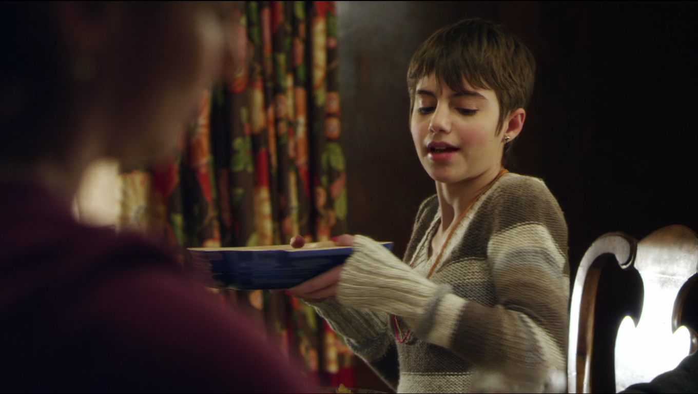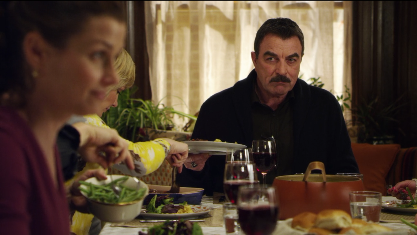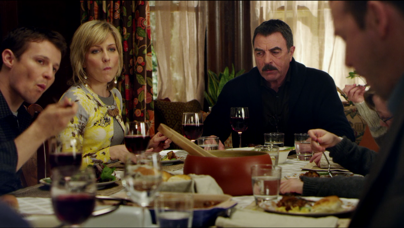 As the family gathers for dinner, Linda comments on how delicious the food smells. The boys ask what it is, and Grandpa replies “Bossa Nova – your Aunt Erin made it”. Erin laughs and says “Osso Buco, Grandpa”. Which of course, leads Henry to say “Osso Buco, Bossa Nova, what’s the difference?” It is a nice, lighthearted moment as most family dinners are usually filled with heated debate. Eventually, the conversation turns to Valentine‘s Day, and Grandpa complains that it is just another holiday dreamed up by the greeting card companies – leading Jack to question “What’s a greeting card?”