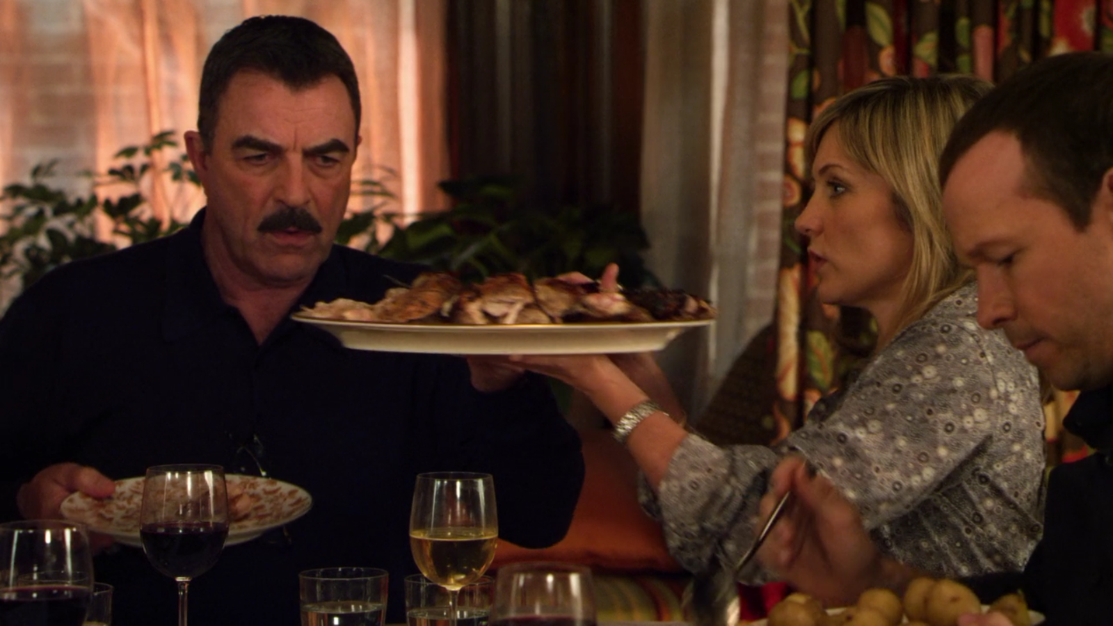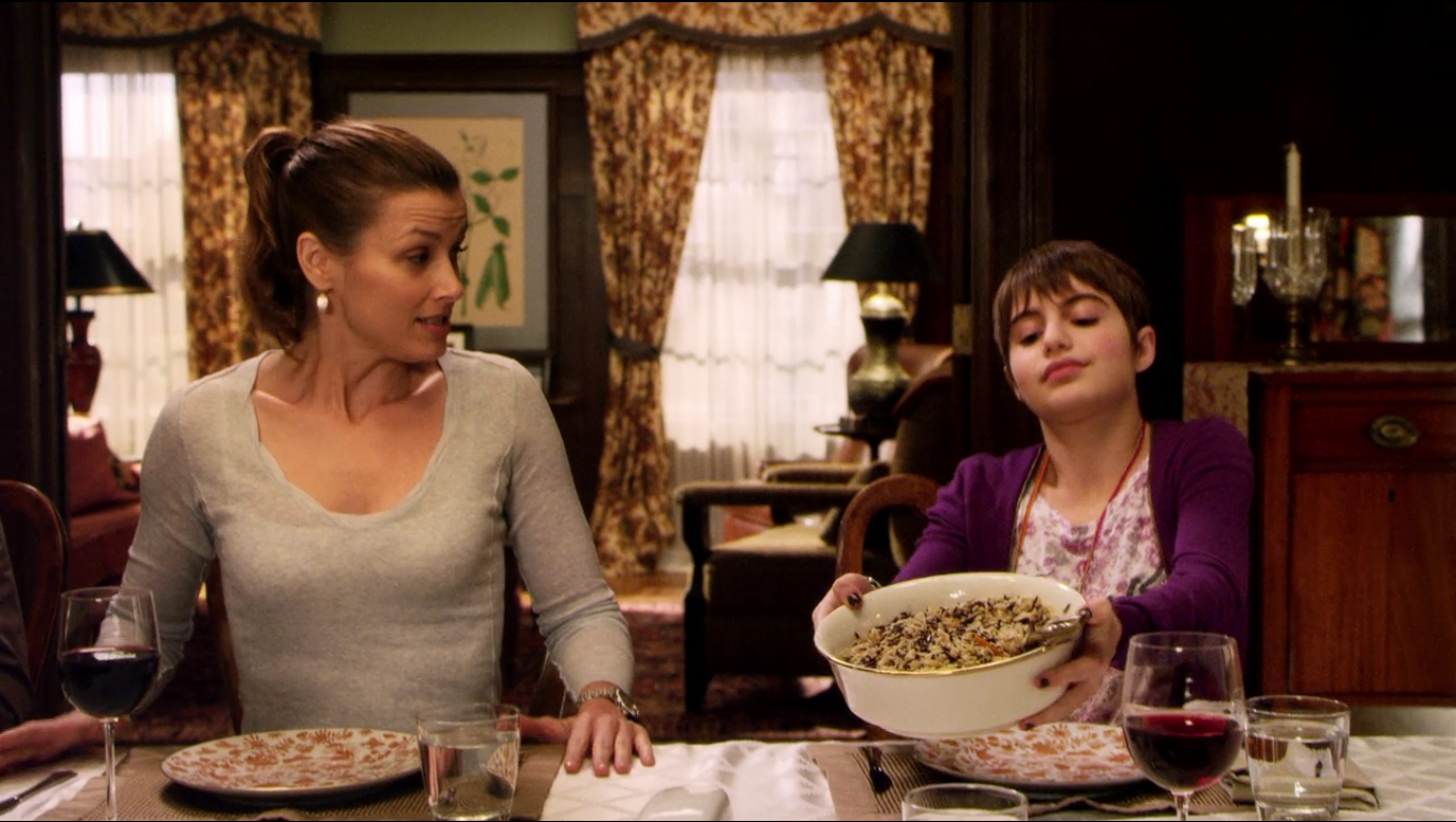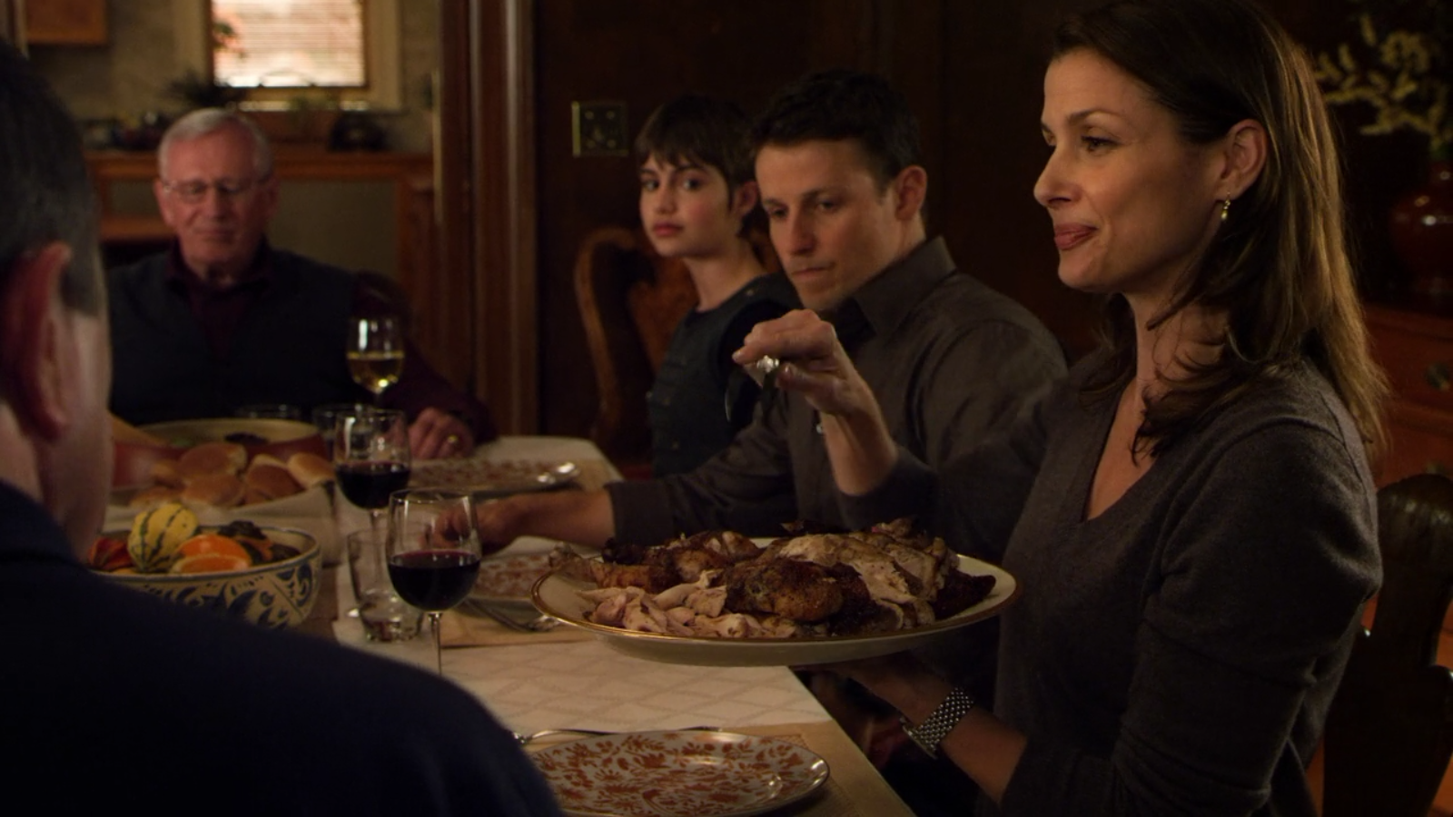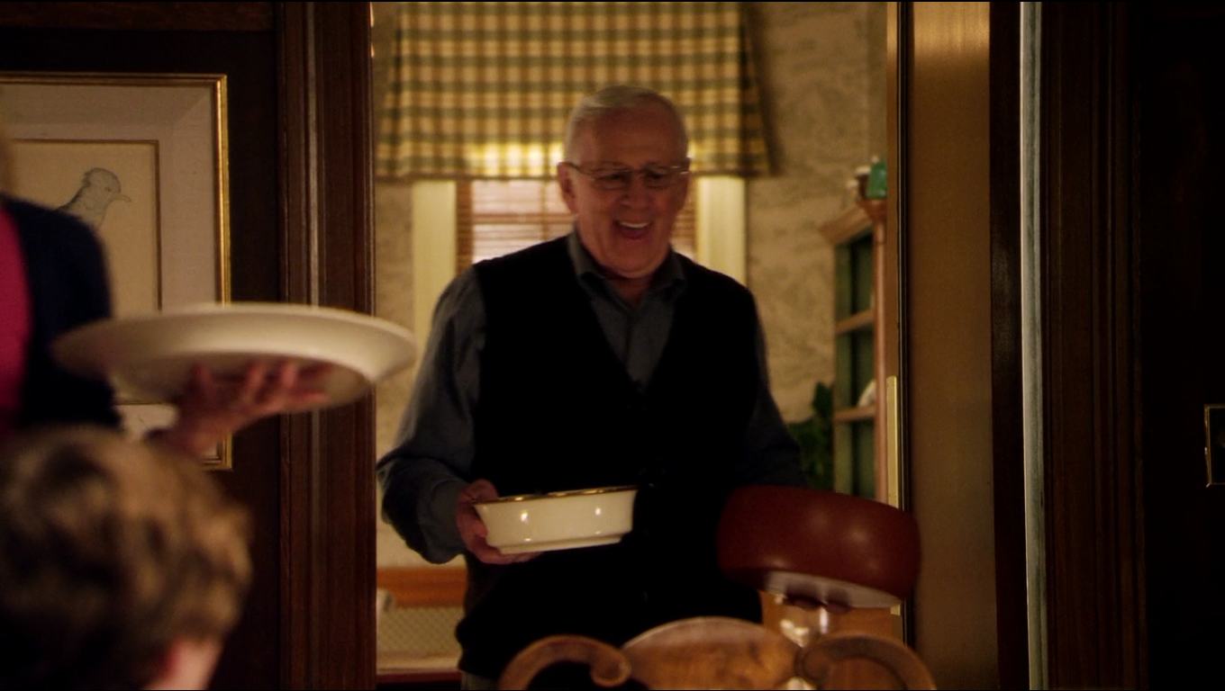 Each week, the family uses a Lenox Eternal Oval Serving Platter, Lenox Eternal Round Serving Bowl, and Lenox Eternal Oval Vegetable Bowl.