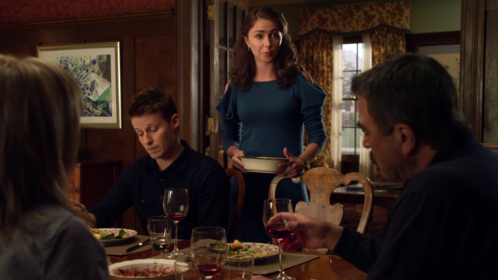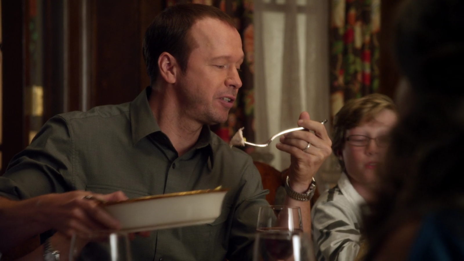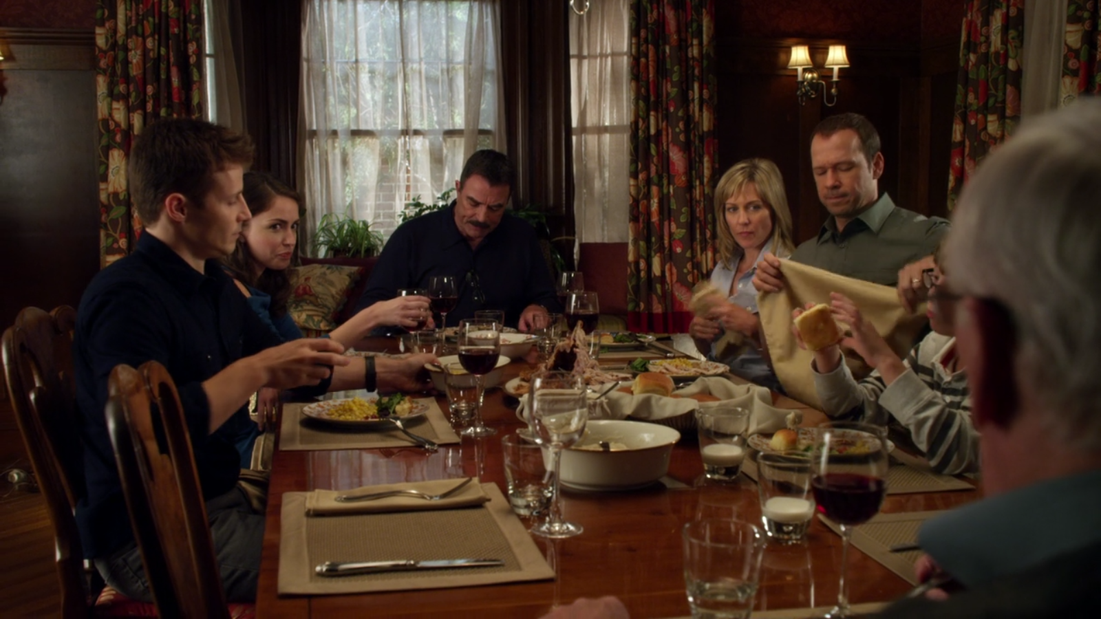 Each week, the family uses a Lenox Eternal Oval Serving Platter, Lenox Eternal Round Serving Bowl, and Lenox Eternal Oval Vegetable Bowl.