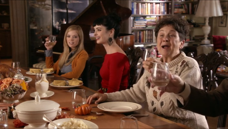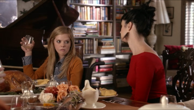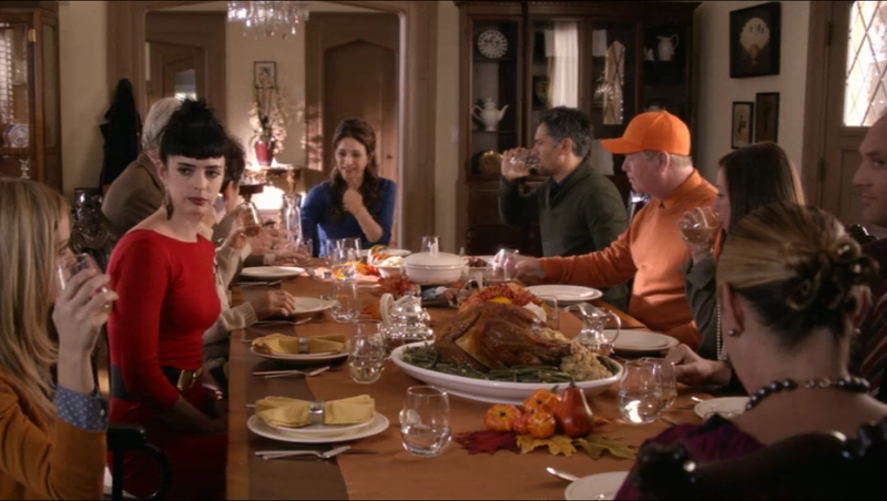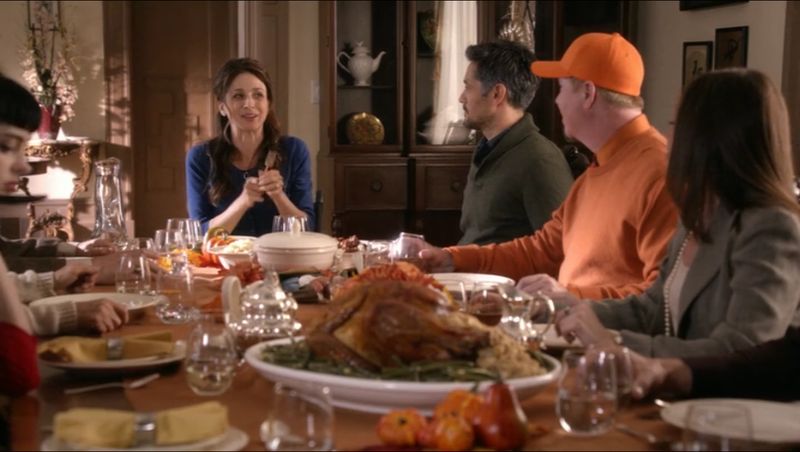 Unable to travel home for Thanksgiving, June is convinced by Chloe to attend her own family Thanksgiving feast! In this scene we see the elegant, cream Wedgwood Edme pattern displayed along the Thanksgiving table. Throughout the uncomfortable, peculiar dinner we see Wedgwood Edme gravy boat and underplate, dinner plates, soup bowls, a covered serving dish, and a large serving platter. The Edme pattern features a cream glaze with sophisticated lines designed from Wedgwood’s original 18th century archives. Each dish is created to perfection and delicacy, adding a touch of refinement to the hysterical scene unfolding.