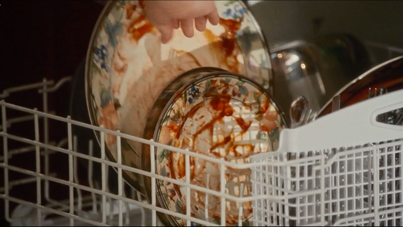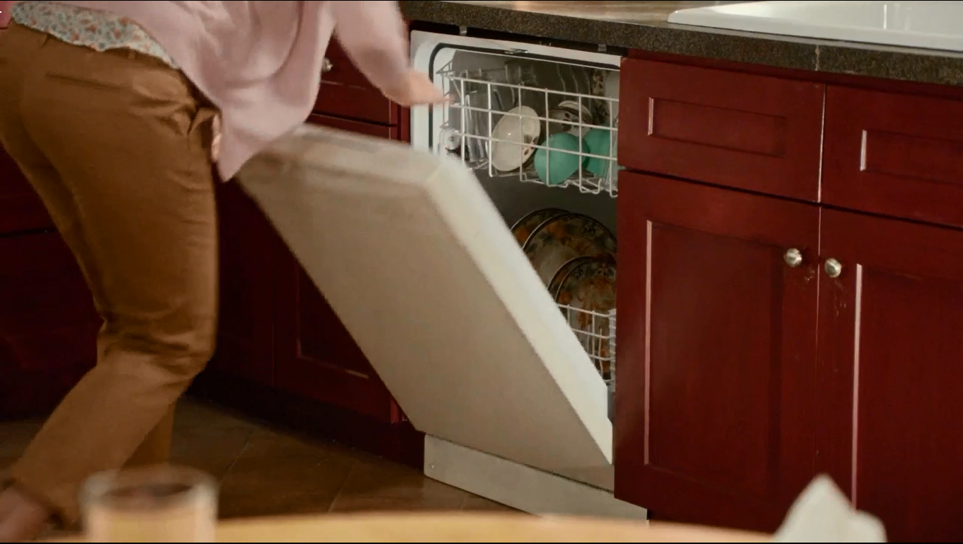 Evan confronts his mother about the dishwasher that they have never used. Jessica says that dishwashers are wasteful, make you soft, plus they are hard on the dishware. She goes on to say that Chinese people respect their nice plates, that is why they are called china.