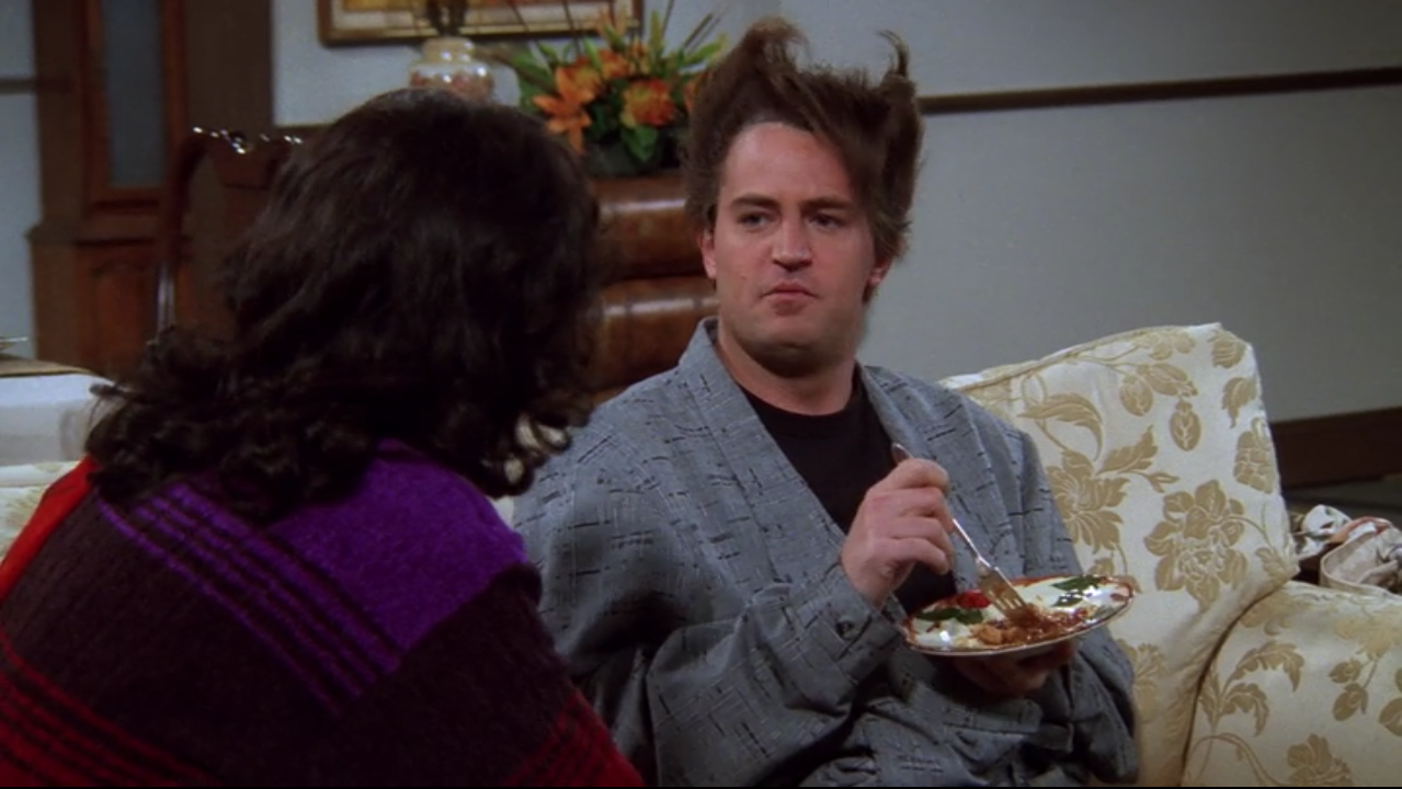 Filled with fashion faux pas and pre-nose jobs, this episode is composed with a series of memorable Thanksgiving flashbacks; the Chandler-Monica relationship evolving from a very overweight Monica to a very vengeful Monica, the constant Ross-Rachel infatuation, and the ever present sibling rivalry between Ross and Monica.