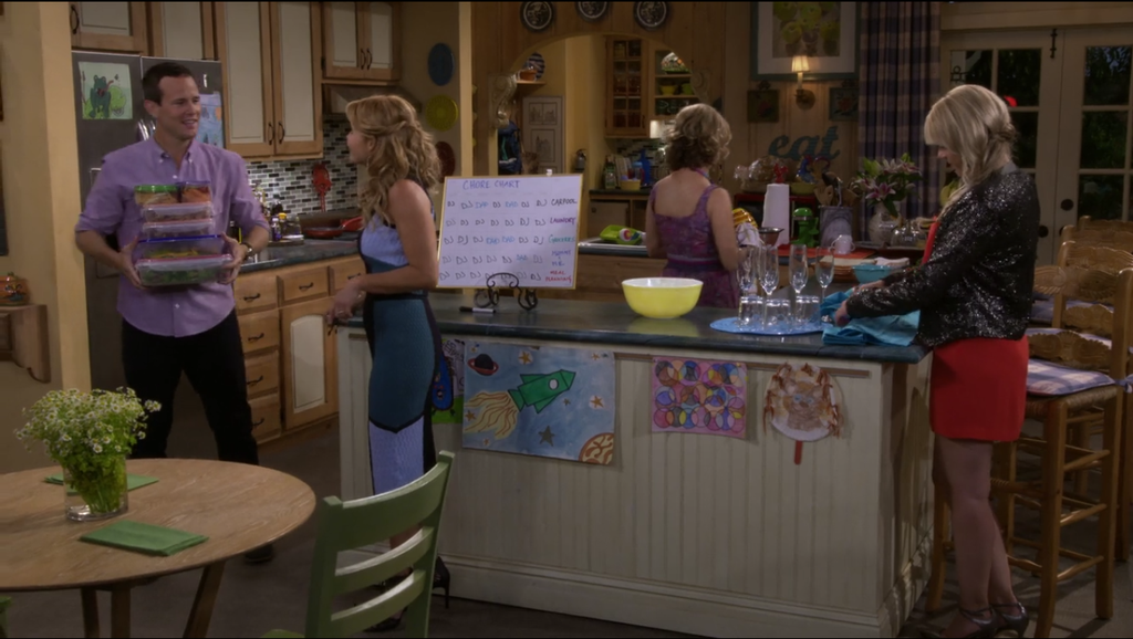 This particular kitchen scene is infused with the same Full House humor that had us all laughing as kids. As the three ladies prep themselves in the kitchen, we are drawn to a brightly colored Pyrex Primary Colors Yellow Mixing Bowl seated on the center of the counter.
