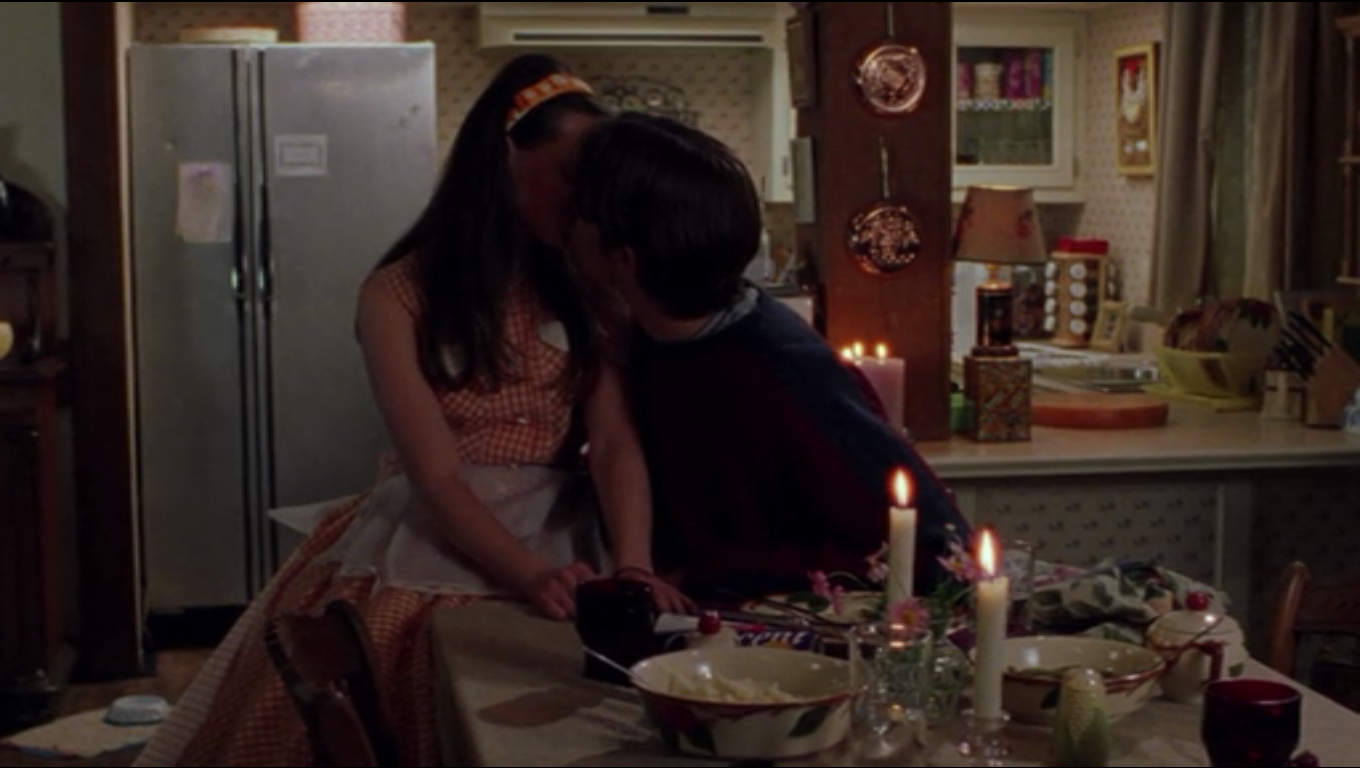 Later, in Episode 14, Rory pet sits for Babette’s new kitten. Rory, AKA Donna Reed, serves Dean the quintessential 50’s housewife meal – pot roast and potatoes (with Ritz Crackers and spray cheese appetizers, of course!). We can see some great shots of Babette’s extensive Franciscan Apple collection. Pieces include dinner plates, salad plates, vegetable bowl, cups, saucers, oatmeal bowls, sugar bowl and more.