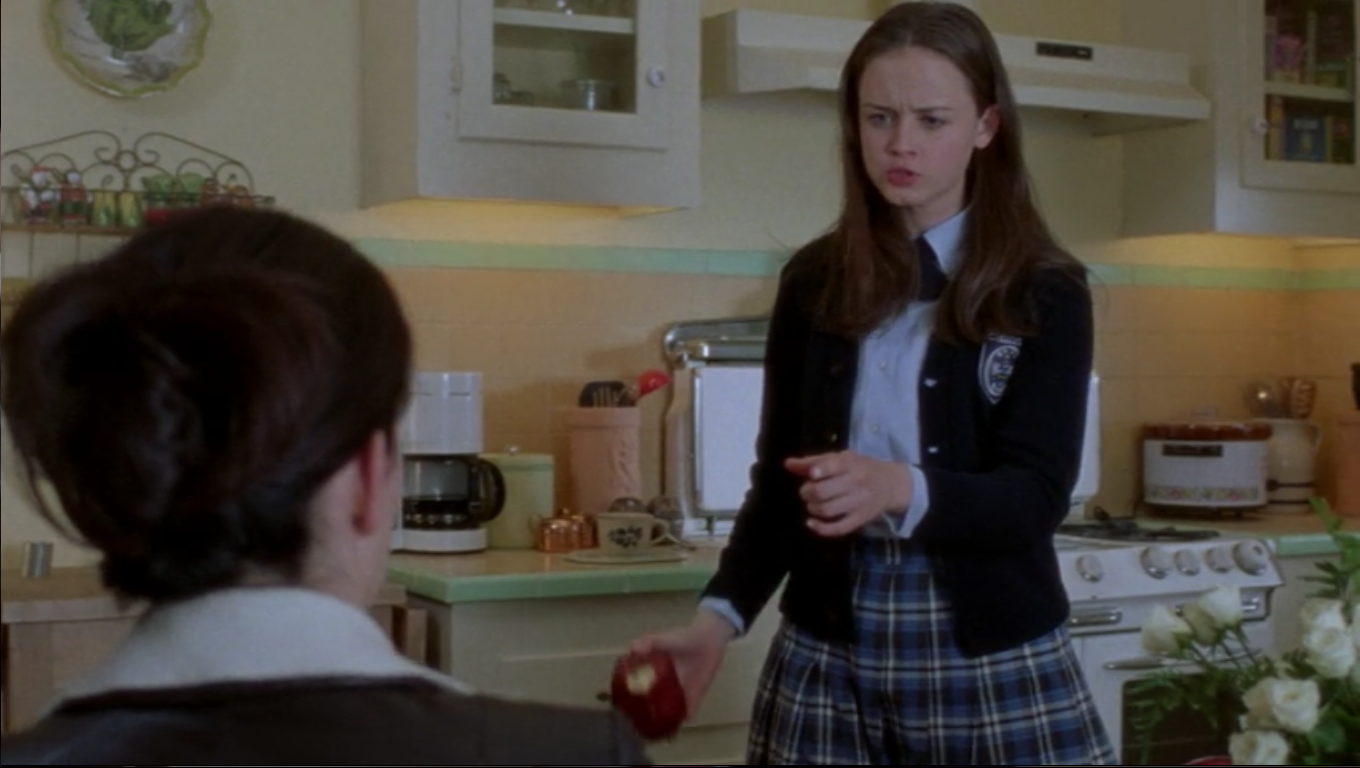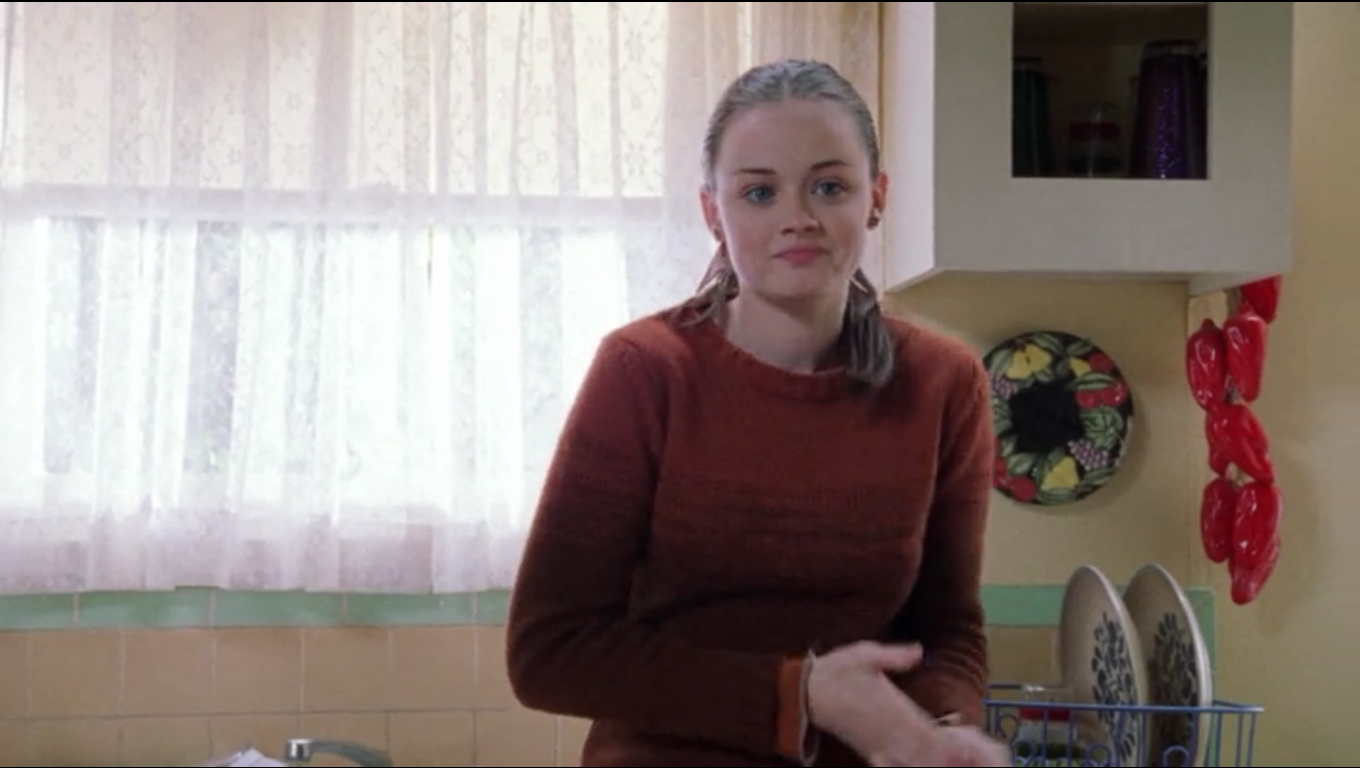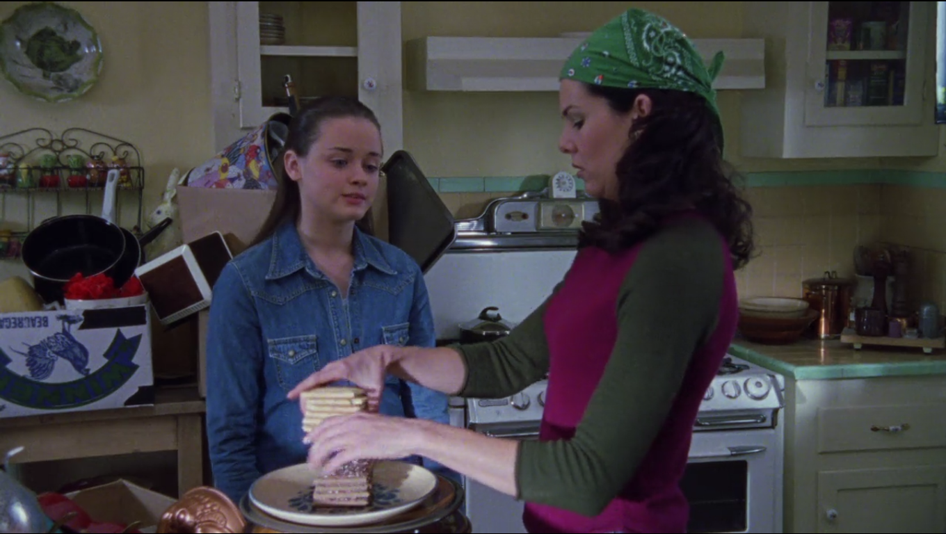 Lorelai has an eclectic mix of pottery in her kitchen, but her go-to dishes are Pfaltzgraff Folk Art. The dinner plates are seen when Emily is serving Lorelai the incredibly unappetizing mashed bananas on toast, as well as when Lorelai serves up some wholesome Pop Tarts to Chilton’s elite. The pattern continues to show up throughout the show.