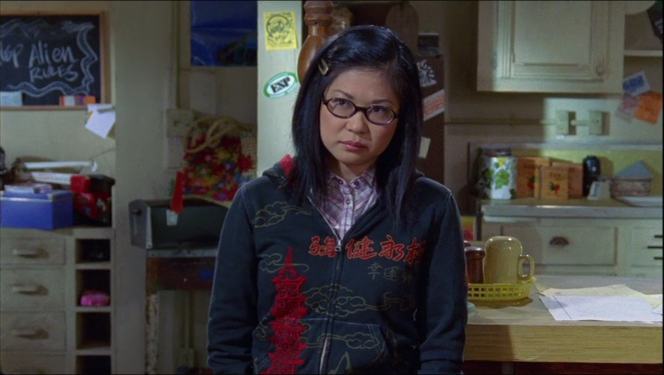 In this scene, Zack, Lane’s boyfriend and lead singer/guitarist of Hep Alien, is playing a new song for band mate, and real-life musical icon, Sebastian Bach. After he finishes playing Bach provides a convoluted, intricate compliment that causes slight confusion, “Yeah, it’s got a nice Fountains of Wayne meets The Shins crossed with “Odyssey”-Era Zombies, and a mix of early Who and mid-to late- era Replacements vibe to it.”