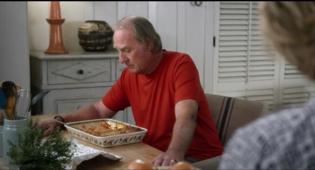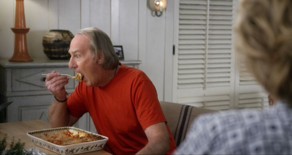 Laughter, tears, shock, and happiness continue to be the fundamental elements throughout this eccentric, unique show! After finding out their husbands are in love with one another, wives Grace (played by the fabulous Jane Fonda) and Frankie (played by the lovely Lily Tomlin) become fast friends and trusted companions. In this specific scene, we see Grace’s new love interest, Guy (played by Parenthood‘s Craig T. Nelson) delving into a delicious lasagna.