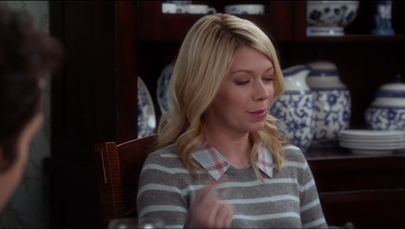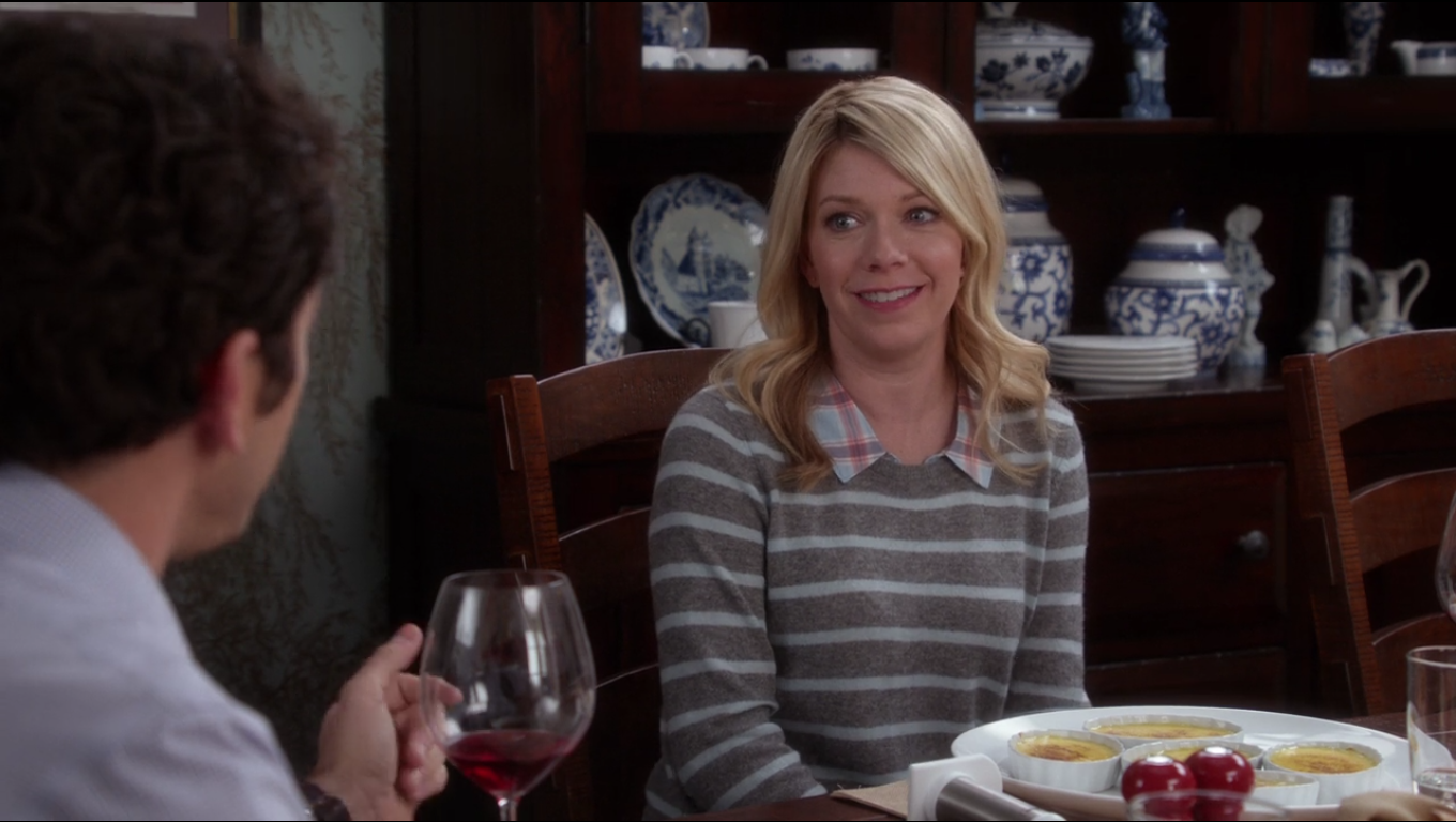 As the family sits down for family dinner, they begin to discuss the events of the day. Dean Sr. is being sued for malpractice, Dean is extolling the virtues of his “take the wheel” philosophy from his therapist, and Debbie is trying to win a bet with her son Ethan. The bet is that Stewart will bring up the fact that Debbie quit her job without discussing it with Stewart first. As Ethan prods his Dad with questions, Debbie starts to realize that maybe quitting wasn’t the best decision. But the end of the meal, her demeanor has shifted from enthusiastic to pensive.