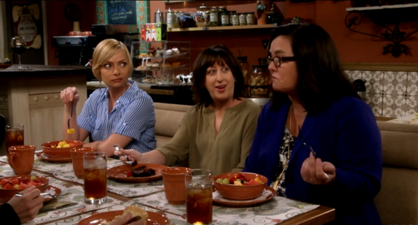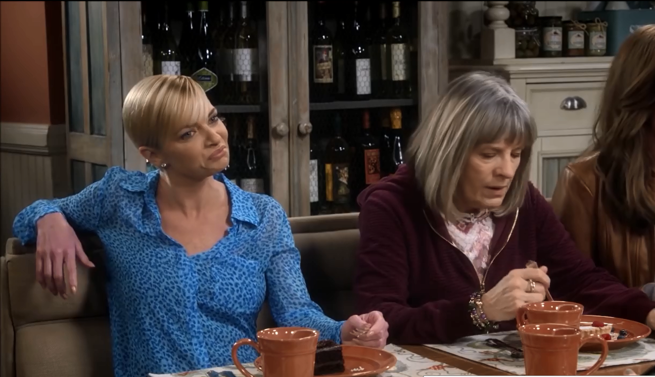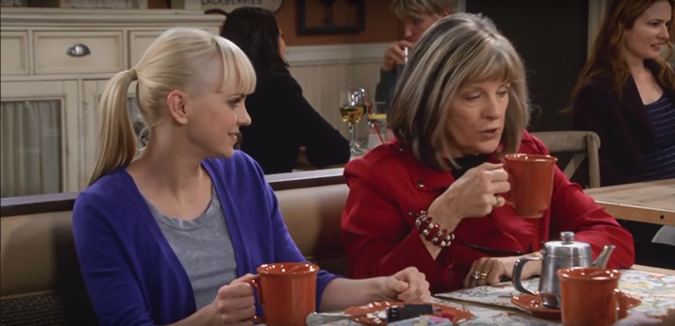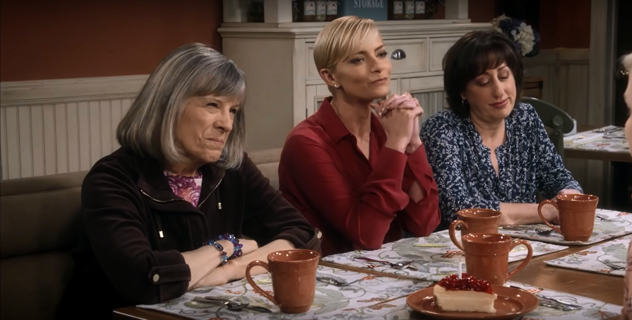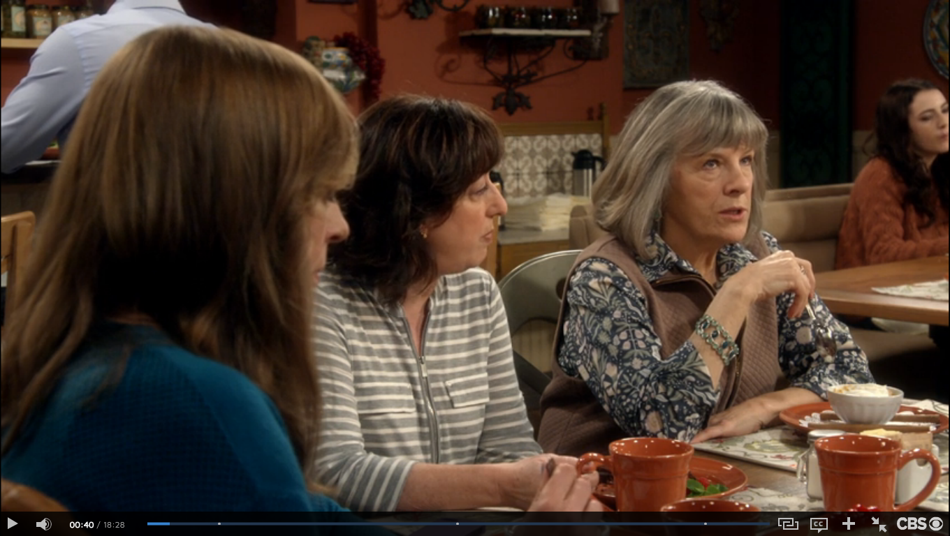 For the ladies of Mom, this place is the Bistro. Here, they discuss the trials and tribulations of sobriety, men, and each other. The food at the bistro has been served on Pottery Barn Cambria Persimmon dishware throughout Seasons 3 and 4. (In Season 1, they used Threshold Wellsbrigde Brick.) Cambria has been offered in 12 colors, and Persimmon was discontinued in 2016. The Cambria dishes were part of Christy’s 3 Years Sober Celebration in Season 3, Episode 22. And when Jill is discussing her options on adoption in Season 3, Episode 18. While the Wellsbridge dishes were there when Marjorie told the ladies that she has breast cancer, in Season 1, Episode 11.