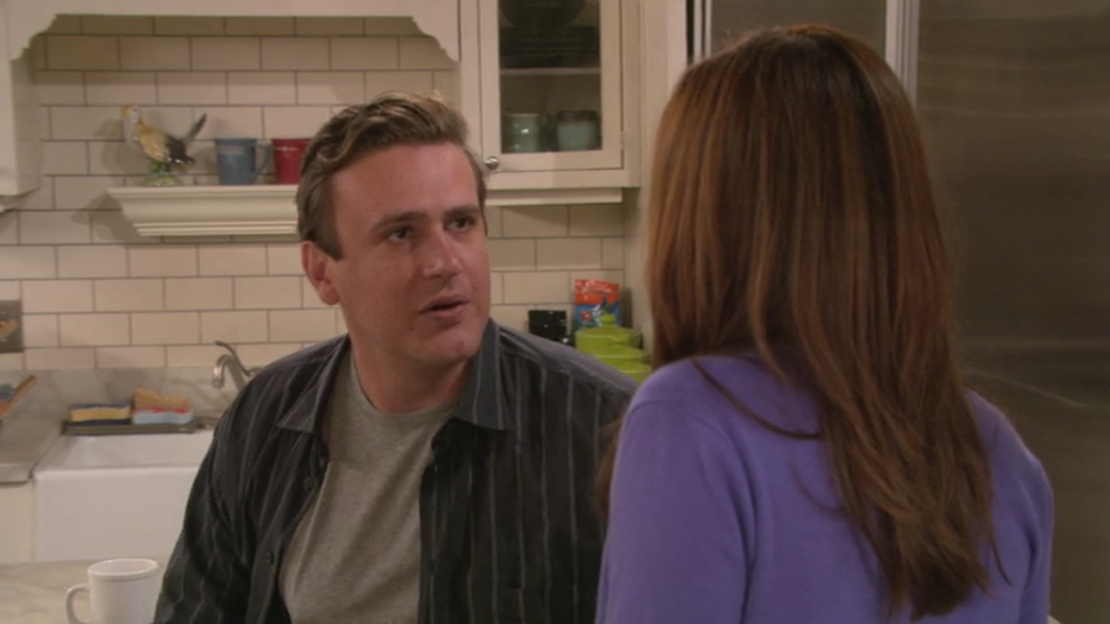 In Lily and Marshall’s kitchen, during an argument ensued by damaging encouragement from Barney, Home Thira Teal mugs sit unassumingly on the countertop and inside the glass cabinets. The mugs feature a teal glaze bordered by a dark metallic brown edge. You can find more Thira Teal here!