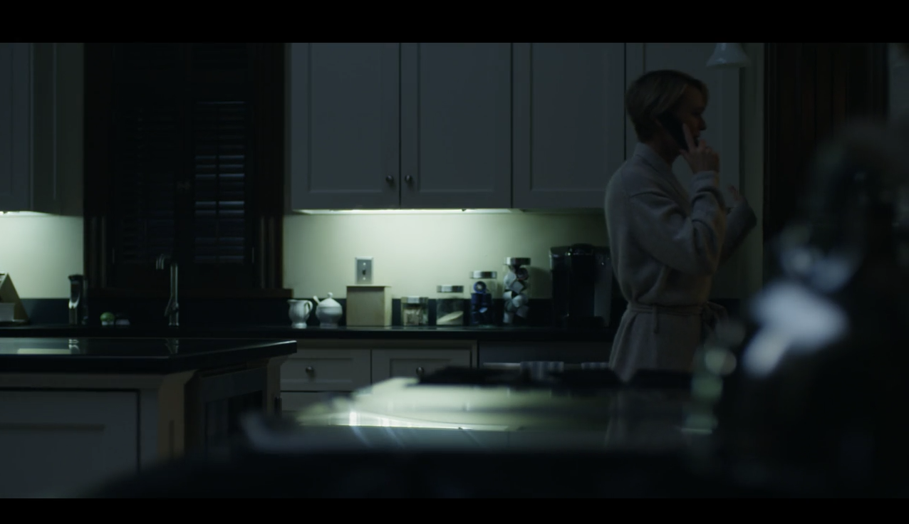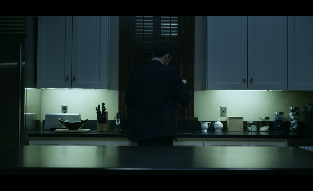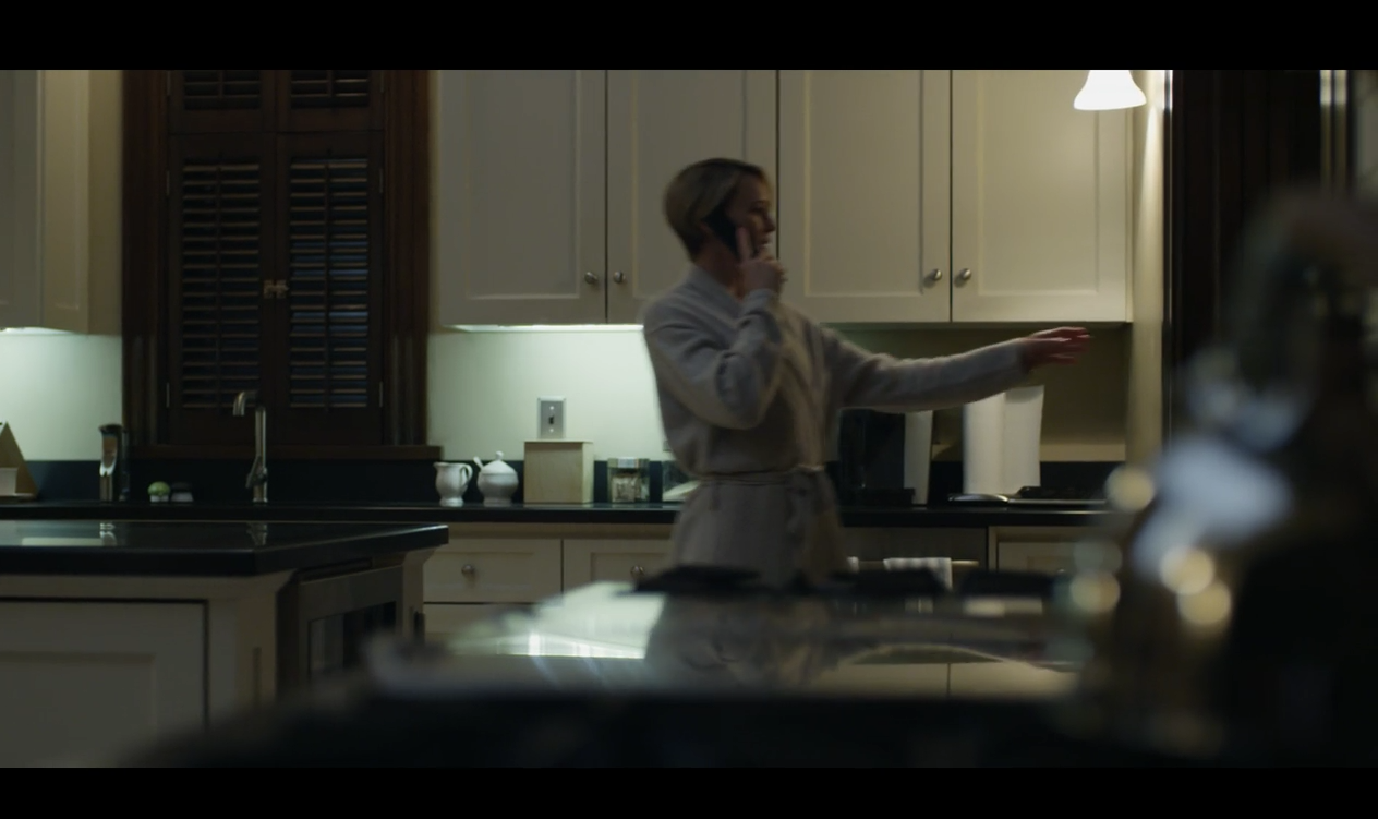 In this particular episode, Frank is attending to political affairs in his home state of South Carolina as Claire stays home to keep the kingdom running. Throughout the episode we notice crisp, unassuming, classy dinnerware mirroring the personality of their keepers. In this scene, a pair of Mikasa Antique White sugar bowl and creamer are seated on the counter in the Underwood’s D.C. home.
