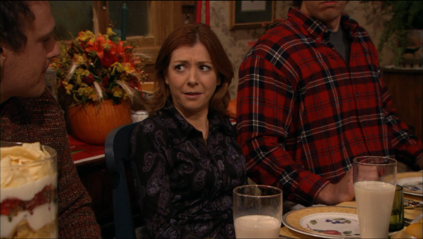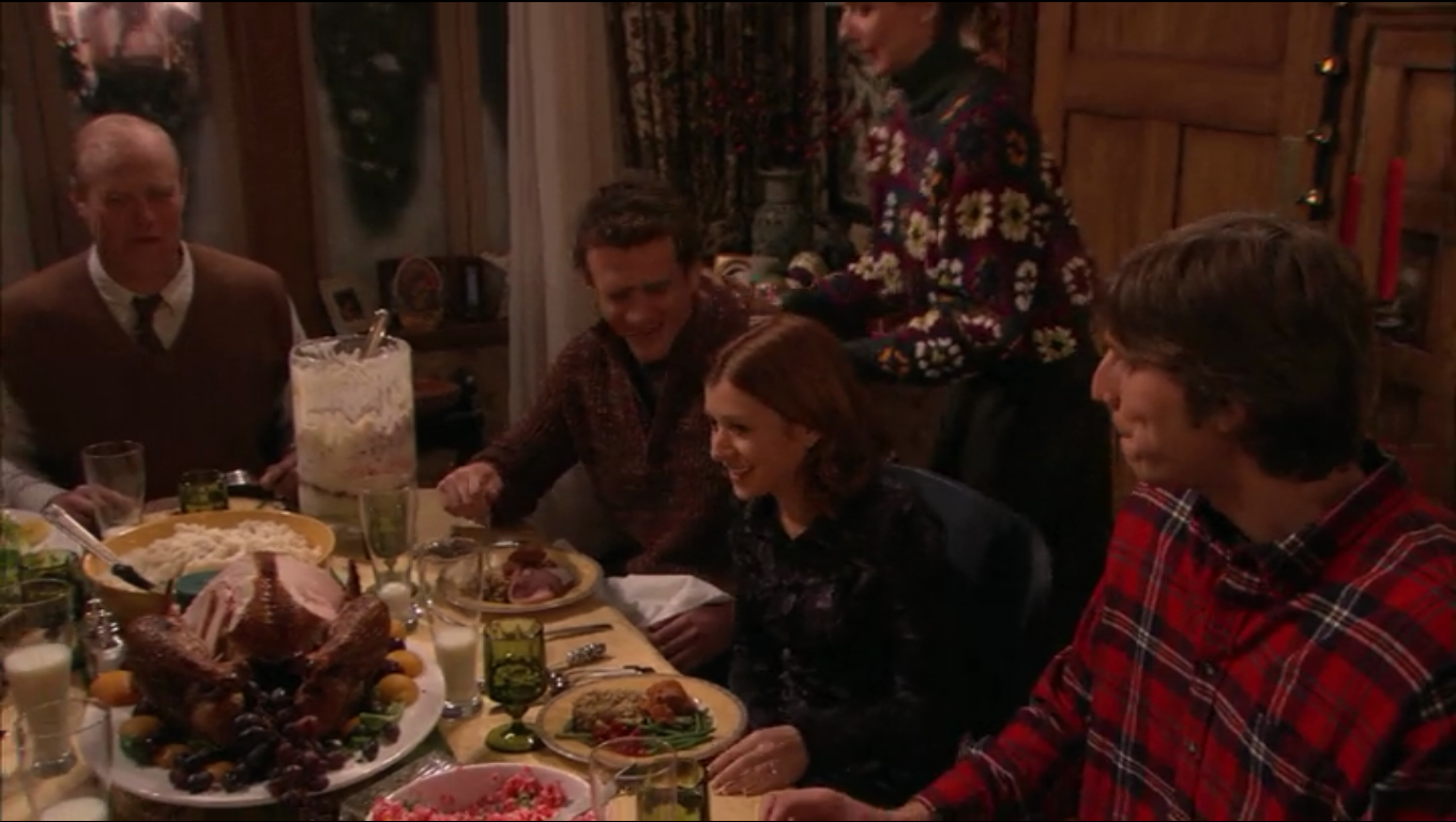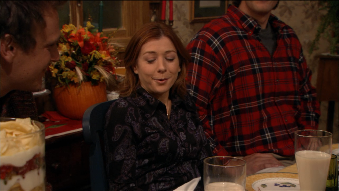 Thanksgiving 2005 doesn’t go quite as planned for any of the HIMYM gang. Lily and Marshall head to St. Cloud for an Eriksen family Thanksgiving. Lily finds out that Marshall wants to move home when they have kids, which he thinks is still years away. Little does he know that Lily is five days late and is already starting to panic (especially when she sees how big Eriksen babies are). As the Eriksens gather around the Thanksgiving table (with Royal Doulton Vintage Orchard Dinner Plates), Lily’s panic gets the best of her and she runs out of the house, and eventually ends up in jail. Meanwhile, Robin, Ted, and Barney get kicked out of a homeless shelter and end up having Thanksgiving dinner at a strip club. One interesting this about this episode however, is that we learn that “The Mother” is named Tracy.