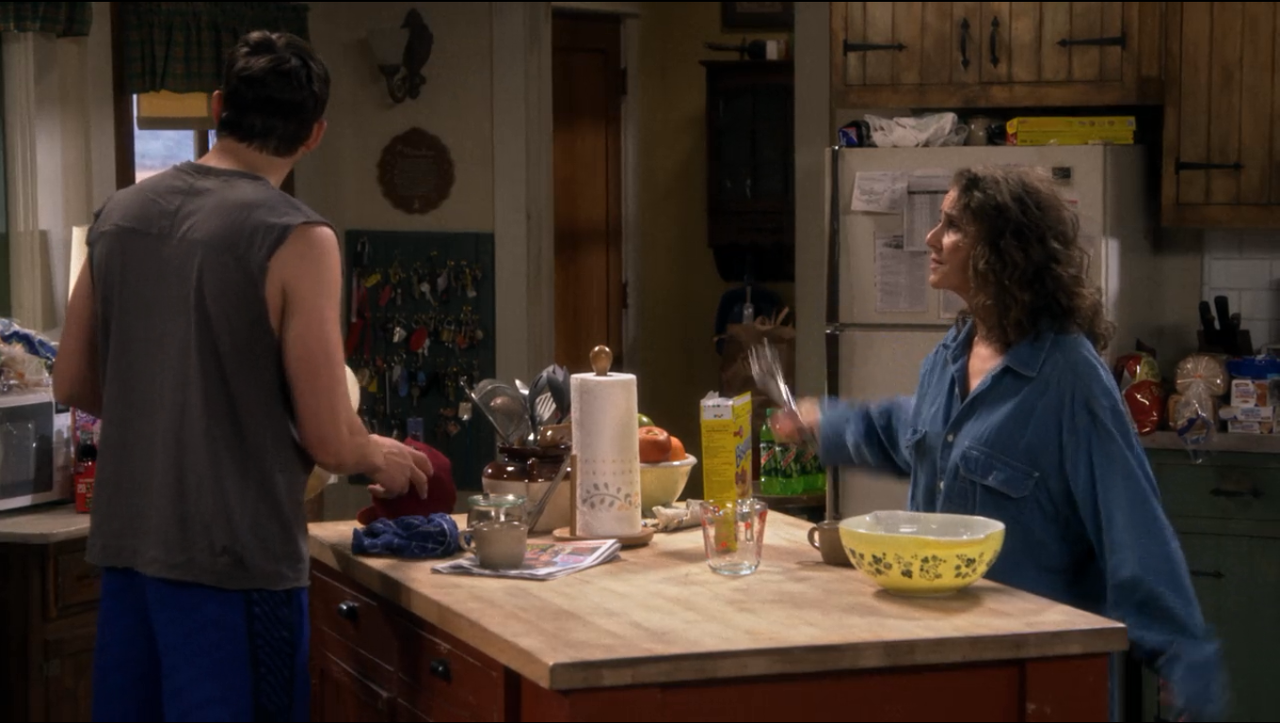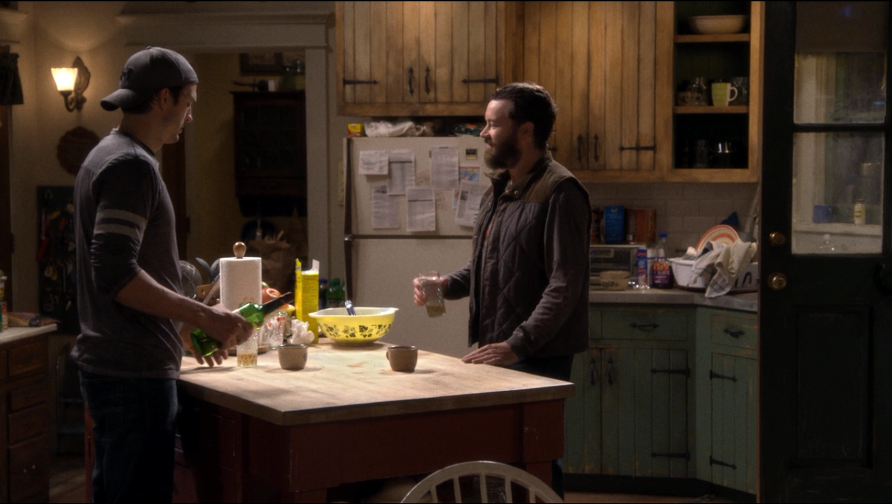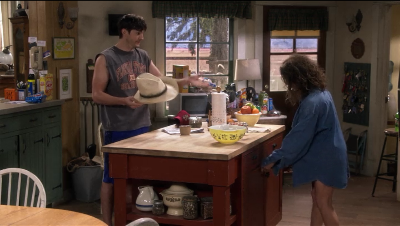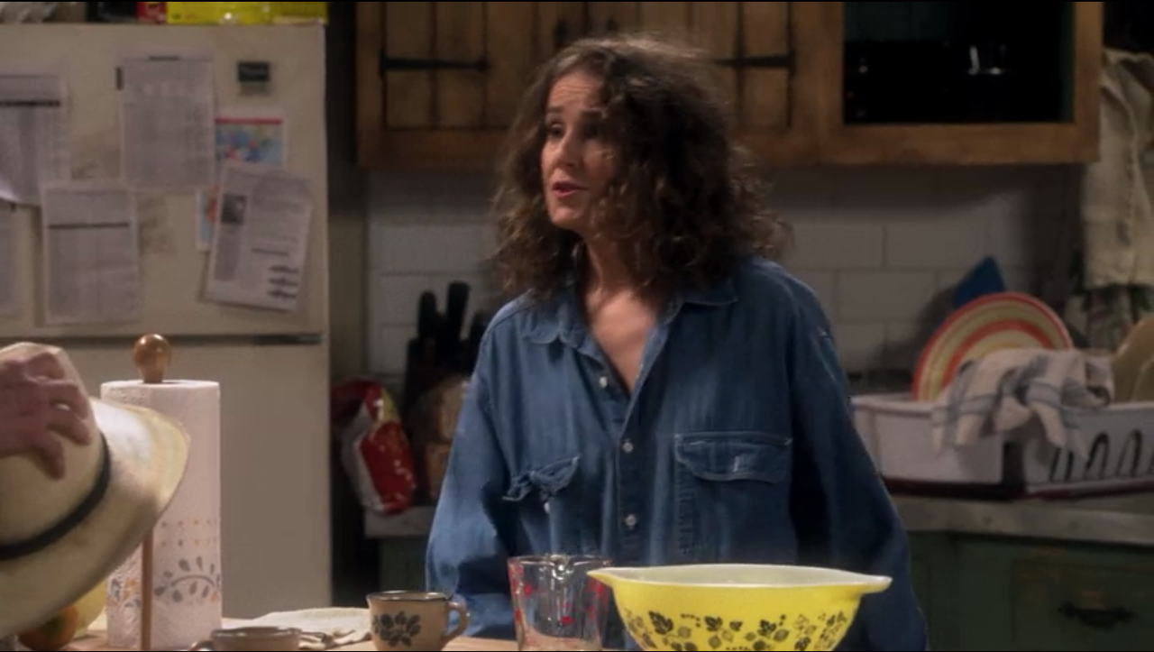 Colt and his mom, Maggie, discuss Colt’s shaky future of becoming a semiprofessional football player as Maggie mulls around the kitchen, preparing her breakfast. During their discussion, Maggie pulls out an eye-catching Pyrex Gooseberry Yellow Bowl. The bright bowl features black gooseberries and leaves circling the exterior of the dish.