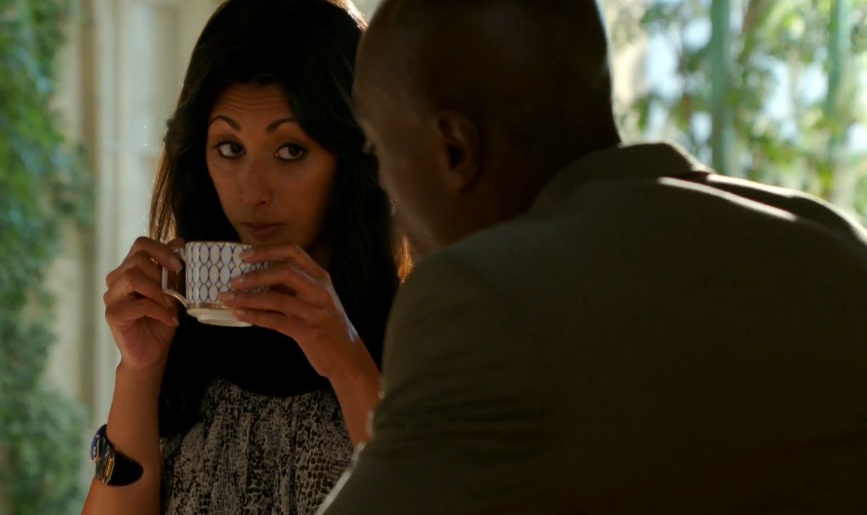 In Season 7 of Royal Pains, Divya is bombarded with suitors. These include Crown Prince Quami Obua (played by the royally crushable Wolé Parks). Prince Quami oozes style, class, and enjoys the finer things in life. So, of course, his portable tea service is nothing less than perfection. The set featured is Wedgwood Renaissance Gold. Wedgwood Renaissance Gold features a modern yet traditional style with a luminous white background, cobalt blue oval and gold patterns decorated around each dish and trimmed in an elegant gold.