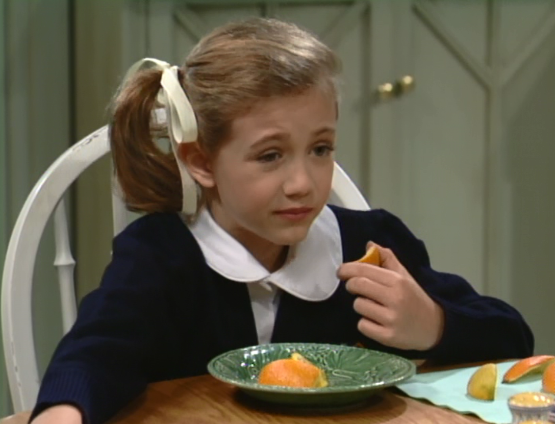As she is snacking on orange slices, she ruminates “I dread puberty, I have combination skin”.