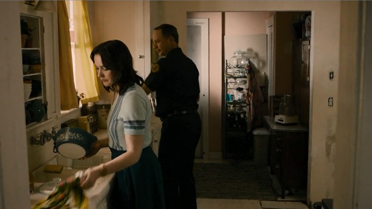 In this scene, the fireman and his wife are having very obvious marital struggles. We see the deep sensitivity and love he has for his wife coupled with her bitterness and negativity as we watch this scene unfold.