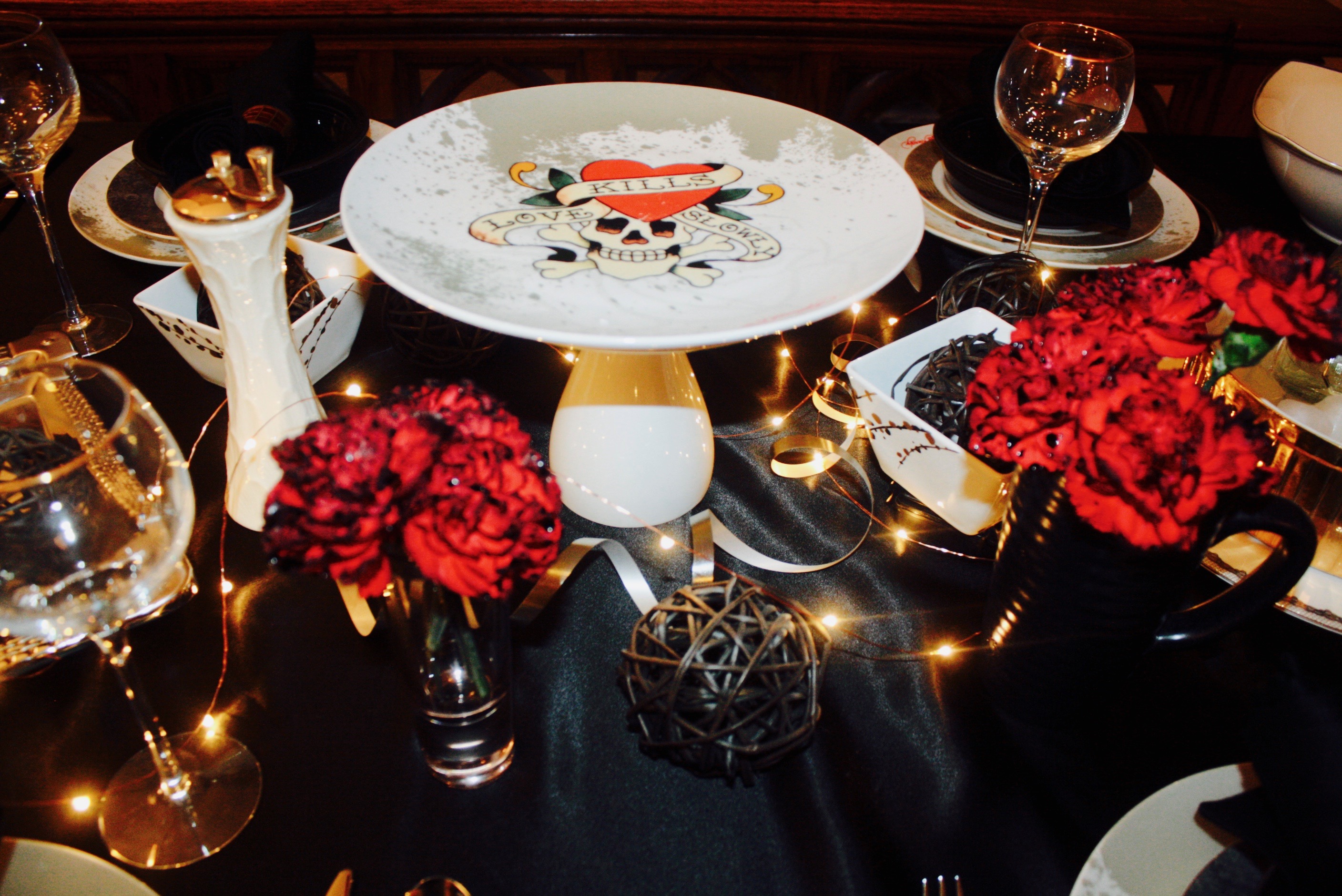 The “Down With Love” table setting is dedicated to all of you singles out there who avoid Valentine’s Day like the Bubonic Plague.